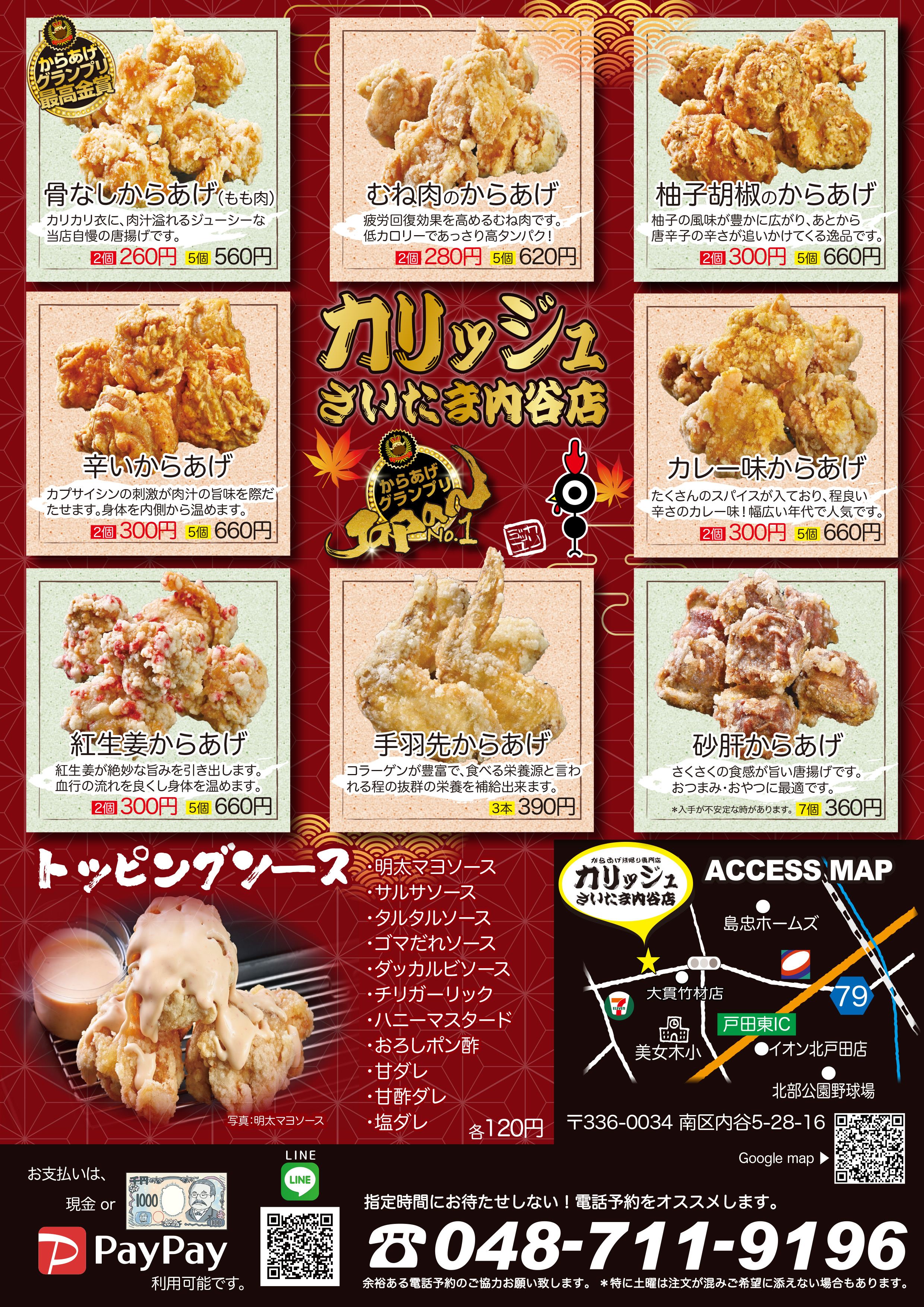 さいたま市で大好評!金賞を受賞したカリッジュのからあげの味をご賞味下さい